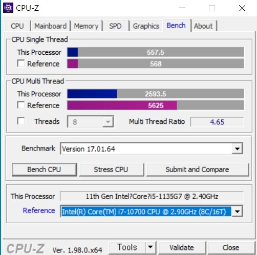 CPU-Z 벤치마크를 통해 CPU의 싱글코어, 멀티코어 성능을 가볍게 살펴보도록 하겠다.