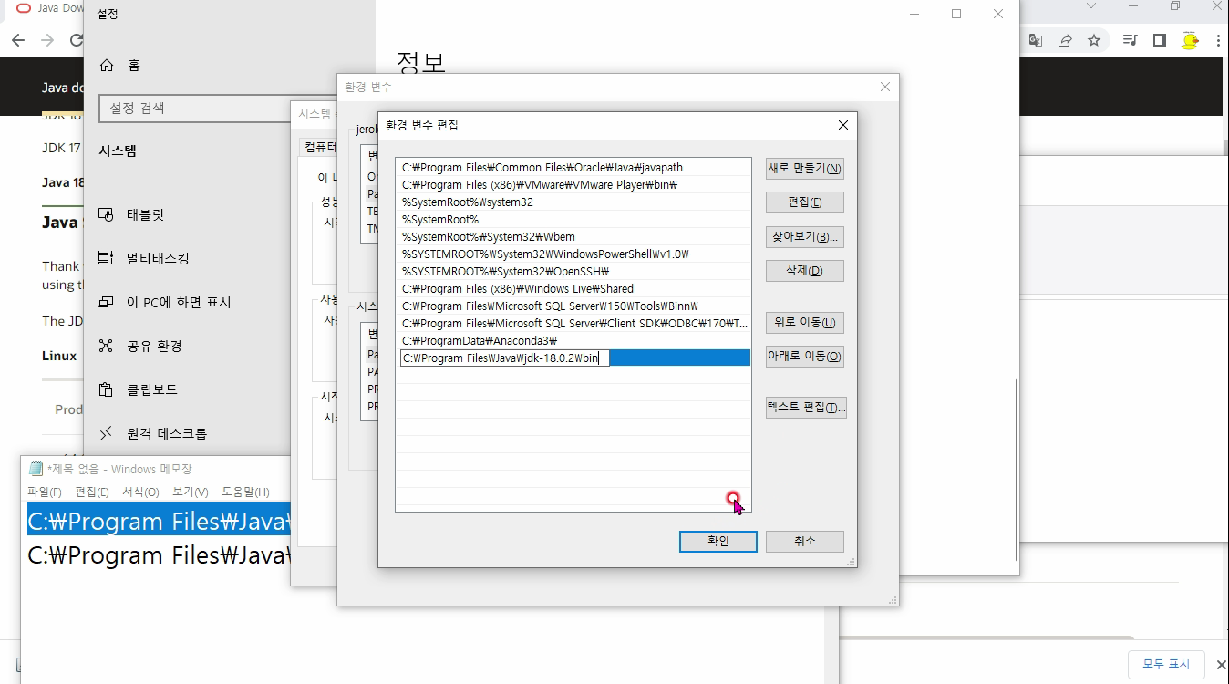 환경변수 설정이 가장 중요합니다. 환경변수를 제대로 해주지 않으면 JDK에 관련한 프로그램이 정상적으로 동작하지 않을 수 있습니다.