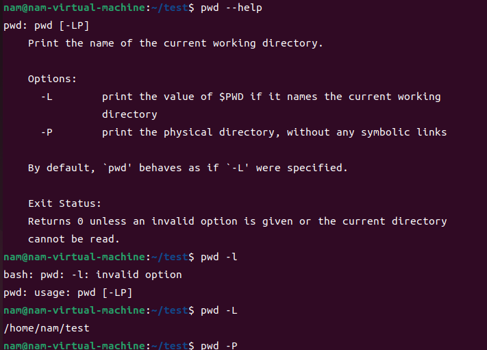 3 | --help | pwd 명령어의 사용법을 출력합니다. | |