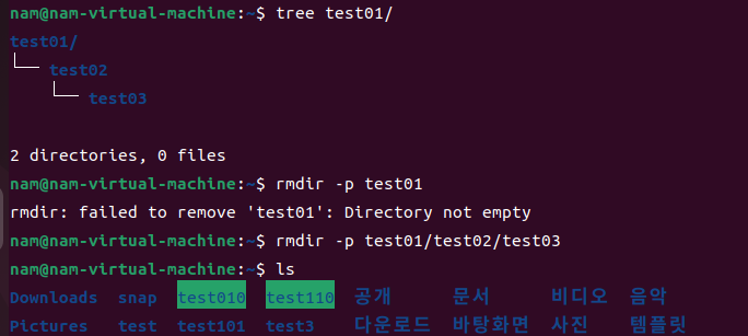 2. rmdir 명령어 사용법