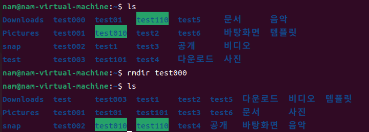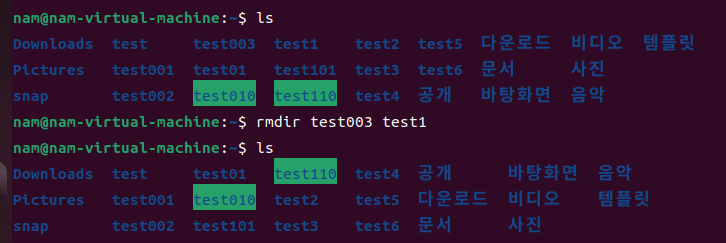 4. rmdir 명령어 사용 예