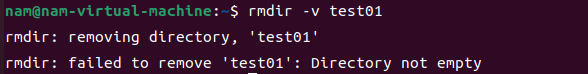 2 | -v | --verbose | 디렉토리를 삭제하고 디렉토리에 대한 메세지를 출력합니다. |