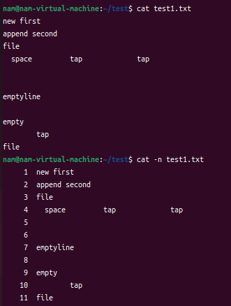 1 | -n | 모든 라인 앞에 라인 번호 출력. (빈 라인도 번호 출력) | |