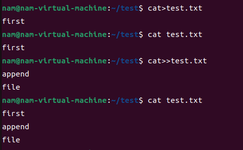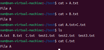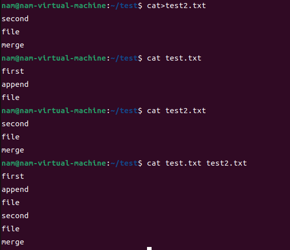 파일의 내용을 출력하기 위한 명령어입니다. 하지만 리눅스에서는 유닉스에서 유래된 연결(concatenate)라는 의미도 가지고 있습니다. 파일을 출력/입력/병합등 많은 곳에 사용합니다.