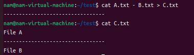 | 파일사이에 내용추가 | cat FILE1 - FILE2 |