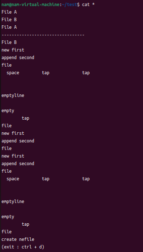 file1과 file2사이에 원하는 추가 내용을 입력하면 사이에 추가가 되어서 file3가 생성됩니다.