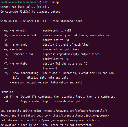 . cat 도움말