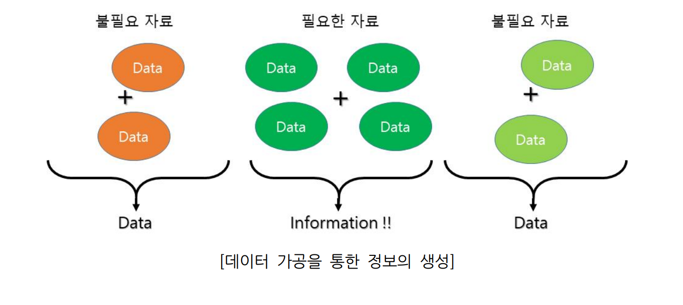 - #정보(Infomation) : 의미있는 데이터의 가공물 , 필요한 자료를 가공해서 나온 결과물이 정보가 되는것이다. 자료가 곧 정보가 되기도 한다. ex) 뉴스 , 날씨, 신문 같은 1차가공된 자료들
