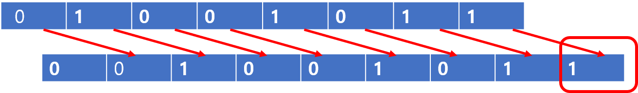 이렇게 출력시키다 맨 마지막 8번째 비트는 마지막 8번째 비트를 제외한 나머지 비트들을 0으로 리셋시킨 후 쉬프트할 필요없이 그대로 출력하면 된다.