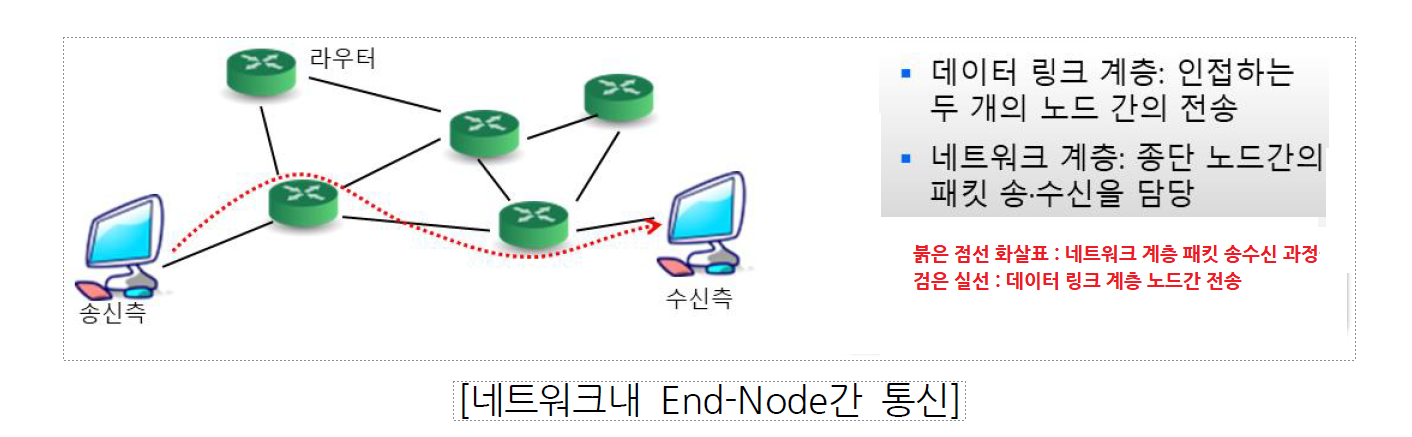- 송수신 대상은 패킷을 송신측 단말에서부터 수신측 단말로 전송한다