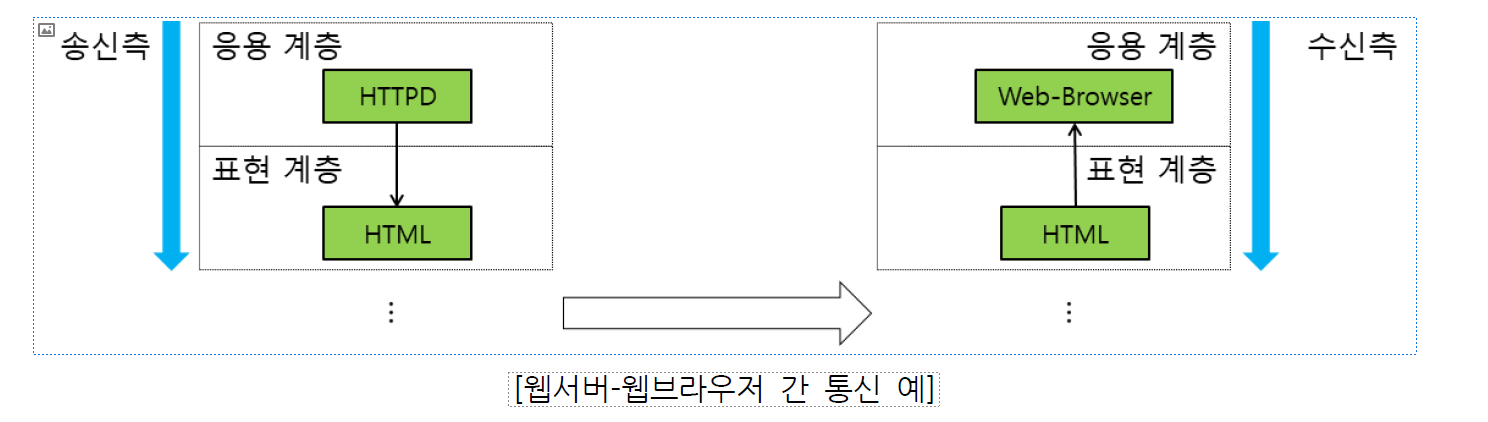 - 각 계층의 송신측은 헤더를 추가하고 수신측은 해당계층이 이 헤더내용을 참조