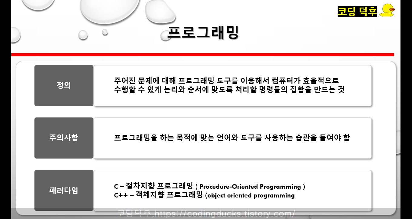 설계/코딩/디버깅하는 과정을 모두 합쳐서 프로그래밍하는 과정이라고 합니다.