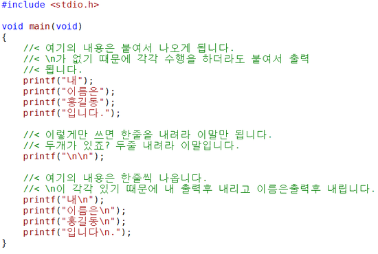 이명령은 이스케이프 문자(Escape Sequence)라고 하는것인데요 이것 말고도