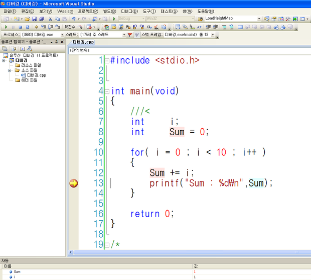 이것을 우리는 "브레이크 포인트" 즉 디버깅 할때 멈춰야 할곳으로 지정하는