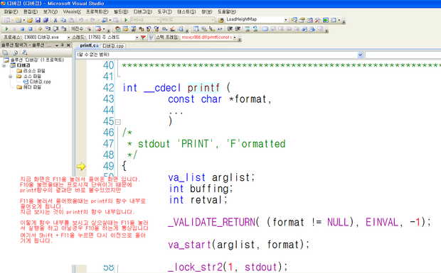 F11로 함수 내부까지 들어갔을때