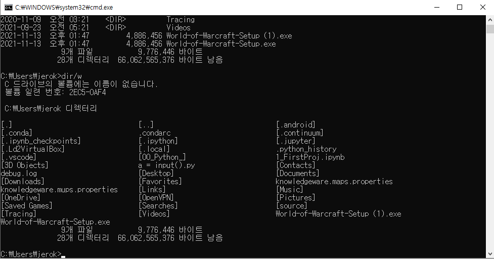 - 실행하고자 파일의 이름(경로포함)을 입력하고 엔터키 입력