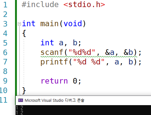scanf("%d%d", &a, &b); //엔터/공백으로 입력 데이터가 구분되어 입력