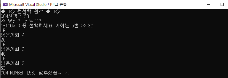 printf("COM NUMBER [%d] 맞추셨습니다.\n",com);