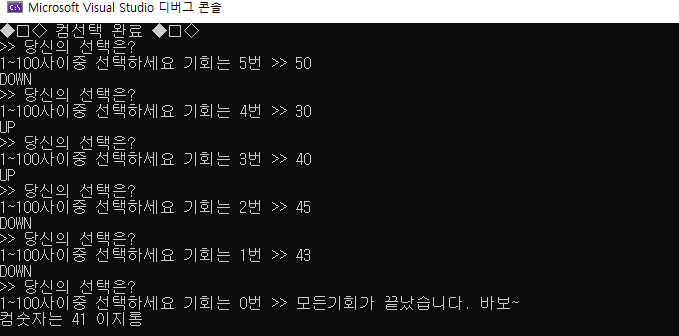 puts("◆□◇ 컴선택 완료 ◆□◇");