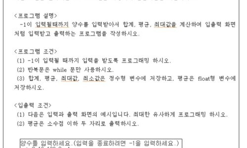 printf("양수를 입력하세요.(입력을 종료하려면 -1을 입력하세요.)\n");