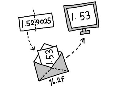 참고 %.3f 와 같은 형식으로 지정하면, 소수점 이하 넷 째 자리에서 반올림하여 소수점 이하 셋 째 자리까지 출력하라는 의미이다.