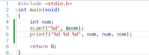 printf("%d %d %d", num, num, num);