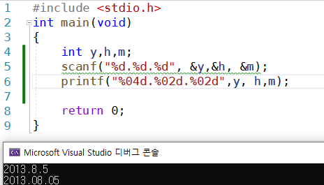 년, 월, 일을 입력받아 지정된 형식으로 출력하는 연습을 해보자.