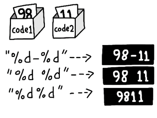 printf("%06d%07d",front,tail);