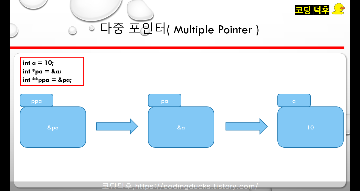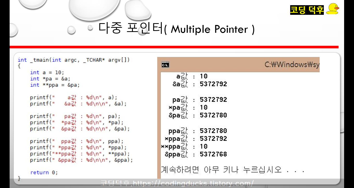 포인터에서 많이 헷갈려하는 것이 다중포인터 입니다.
